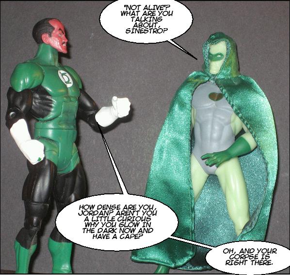 I will say I'm glad you only paid 5$ for that Hal/Spectre figure because, no offense bro, but that shit looks low-rent. As in homemade paint job and everything, even that sparkling green cape:)